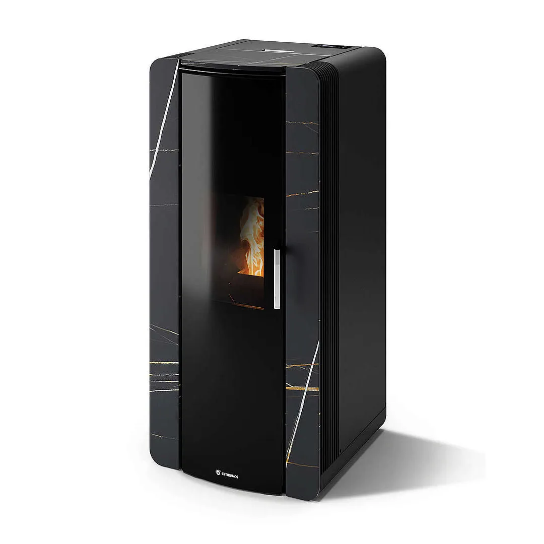Le Firenze 12 de CS Thermos est la version grande puissance de la gamme pierre naturelle, avec une plage de 4,98 à 11,97 kW pour chauffer jusqu’à 350 m³. Son revêtement en pierre — disponible en Ollaire, Platinum White, Umbra ou Noir Azalai — lui confère une présence visuelle unique dans les grands espaces. Certifié Éco Design 2022, Classe Énergie A+ et équivalent 7 étoiles RT2020.