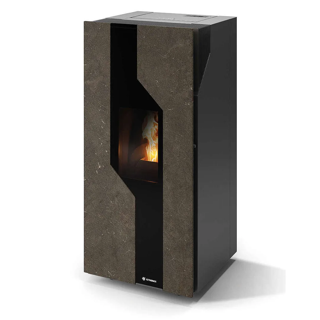 Le Sirmione 10 de CS Thermos allie un revêtement entièrement en pierre naturelle — disponible en Umbra, Platinum White, Ollaire ou Noir Azalai — à des performances de premier plan : rendement de 93,85 %, puissance de 4,98 à 10,16 kW, chauffage jusqu’à 290 m³. Certifié Éco Design 2022, Classe Énergie A++ et équivalent 7 étoiles RT2020, il représente le meilleur de la gamme Sirmione.
